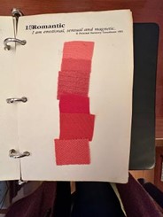 But seen in the un-shadowed areas, it definitely has some warmth. So maybe it could work for several seasonal harmonies. What is fascinating to me about Personal Style Counseling’s color analysis is that the exact same color can have a very different effect on two different people. A color that appears in the “Romantic” red portion of someone’s palette, may appear in the “Sophisticated” page of another person’s palette!